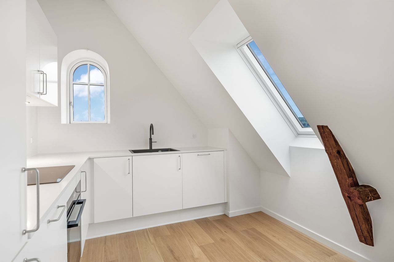 Ejerlejlighedernes indretning er udarbejdet af Arkitec, hvor æstetik og funktionalitet er sat i højsædet for at skabe moderne og gennemførte ejerlejligheder, der med deres unikke udtryk og afstemte farvevalg – både inde og ude, komplementerer den smukke og bevaringsværdige bygning, som danner rammen om disse ejerlejligheder.