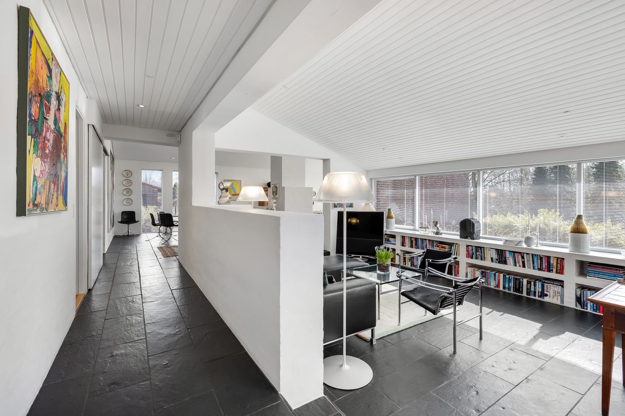 Nu udbydes denne arkitektoniske perle til salg. En helt unik villa med en 1. klasses placering i første række, og med tilhørende stor sydvendt have med udsigt til skøn natur og smukke grønne træer. Denne unikke villa er beliggende med stisystem til både skole og indkøb, hvilket gør det nemt for både store og små.